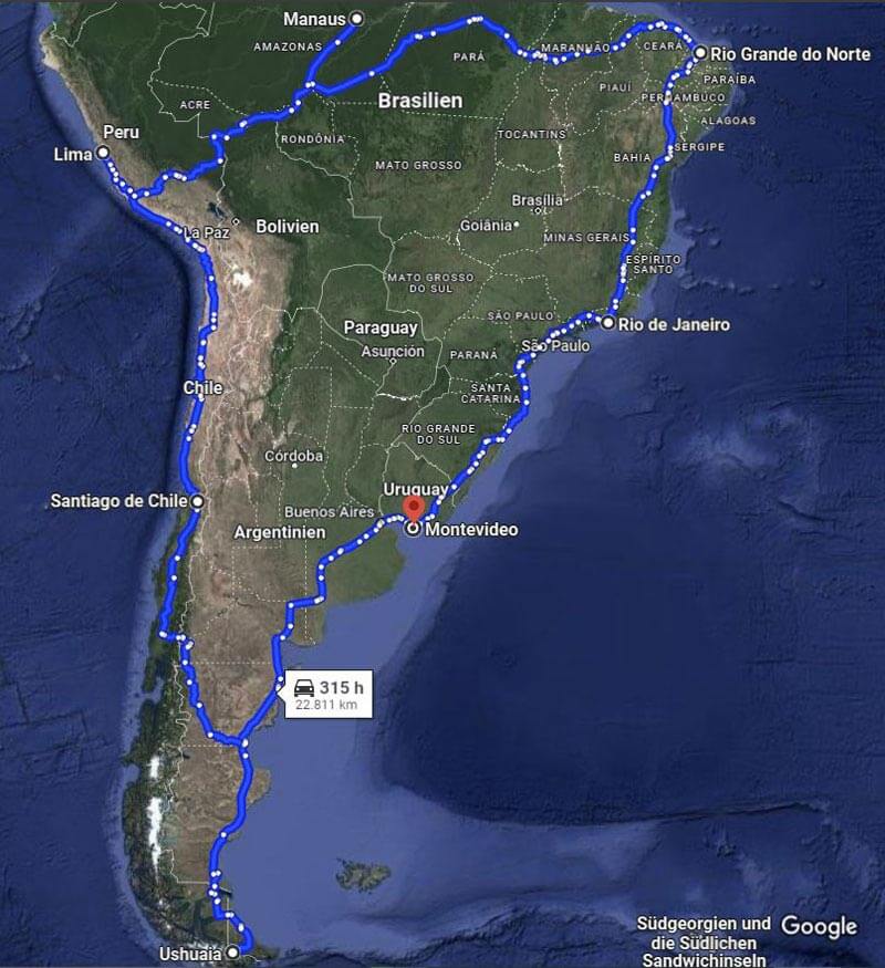 Mein Fahrzeug wird dafür nach Uruguay verschifft, um von dort aus nach Norden zu starten. (Panamericana)