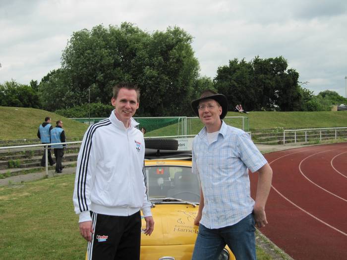 Am 01.06.2012 fand der Sportjugendtag im Weserstadion Hameln statt. Mit „Bea“ nahm ich an einem Spaßrennen gegen Frank Busemann und Andreas Dittmer teil. Da meine Aufgabe war, mindestens 100 m rückwärts zu fahren, ging das Duell „Mensch gegen Auto“ zu Gunsten von Frank Busemann aus. Herzlichen Dank für den Spaß!